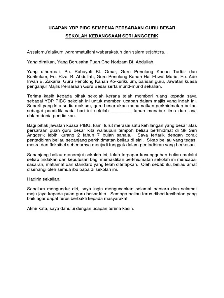 Ucapan Bersara Guru Besar - Teks Persaraan Guru Besar Pdf
